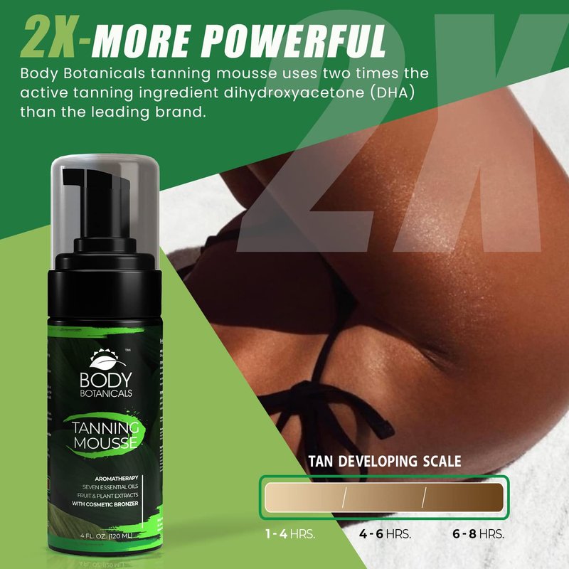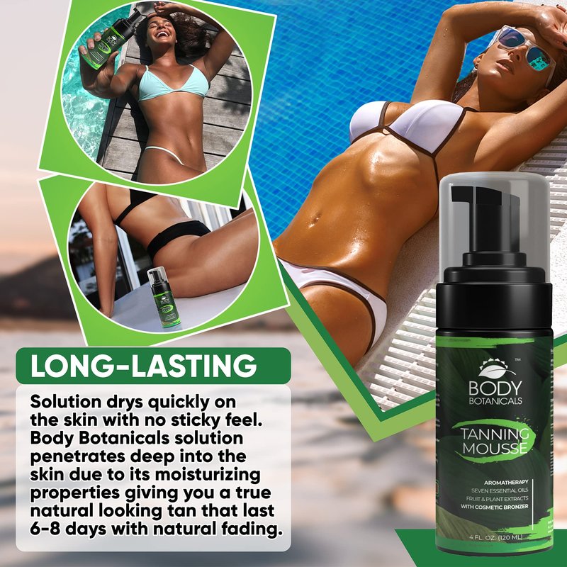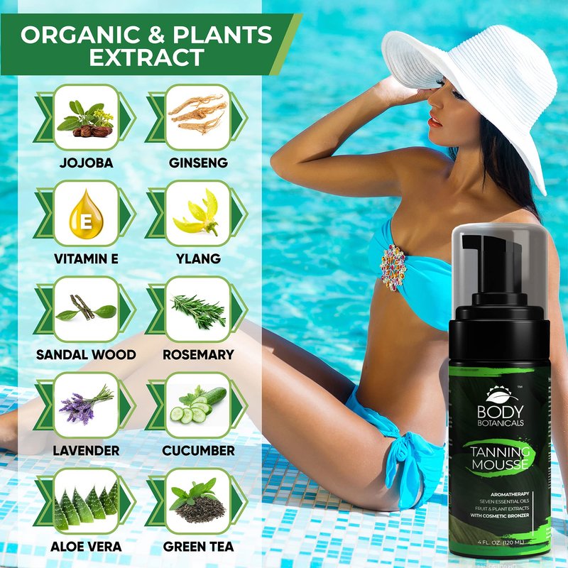 Organic Self-Tanning Mousse - Body Botanicals with Essential Oils & Plant Extracts, Professional Formula Sunless Tanner, Quick Dry, 4oz
