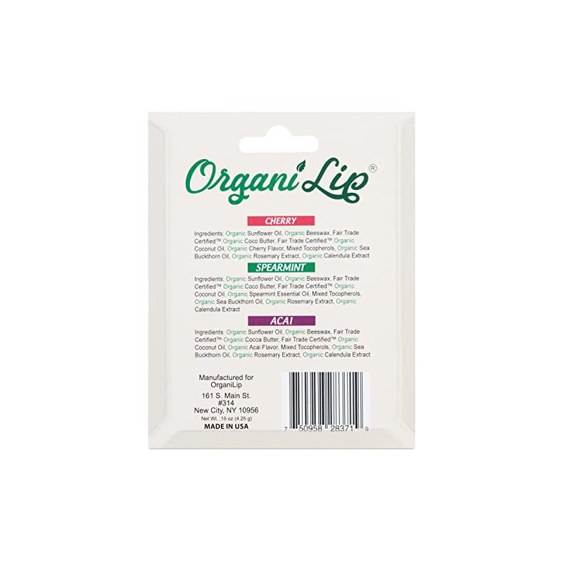 OrganiLip Cherry, Spearmint, Acai Flavored Organic Lip Balm (3 Pack) USDA Certified Organic to Moisturize, Soothe, Soften, Hydrate, and Nourish Cracked & Chapped Lips 100% cruelty free