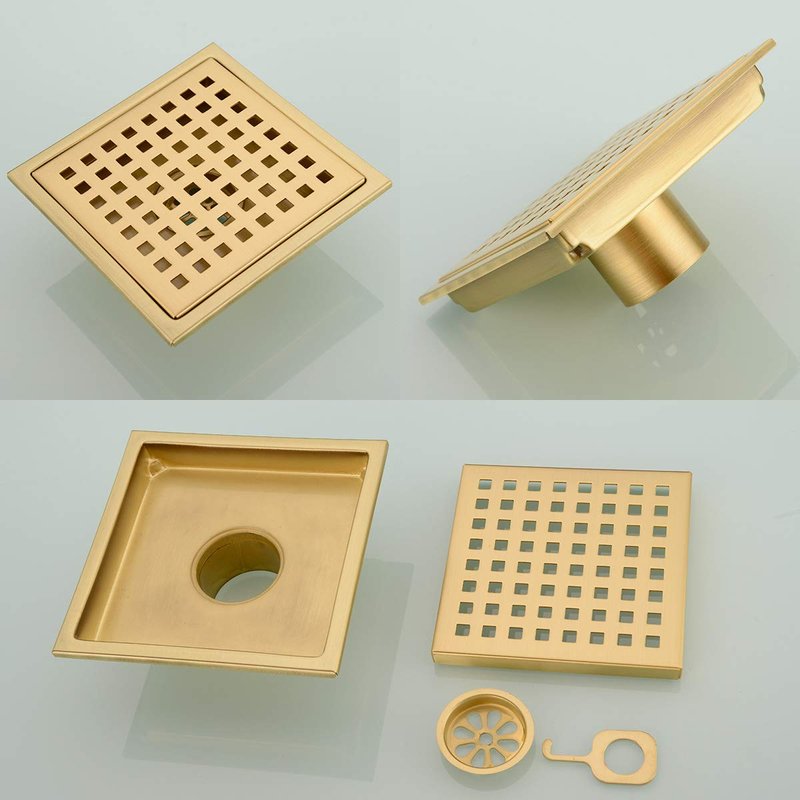 - Vibrant Brushed Gold Finish: awesome look, not easily to be scratched. This gold shower drainer matches your satin gold color/ champagne bronze/ antique brass gold faucets, shower heads and other bathroom fixtures accessories, and looks great with your tile
