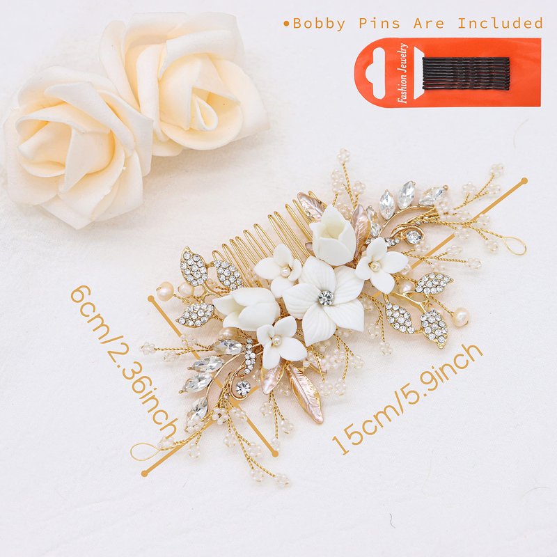 - Bridal Hair Piece For Women And Girls. Freshwater Pearl Wedding Hair Comb With Alloy Wire, Ceramic Flowers,Crystal Rhinestone And Comb.