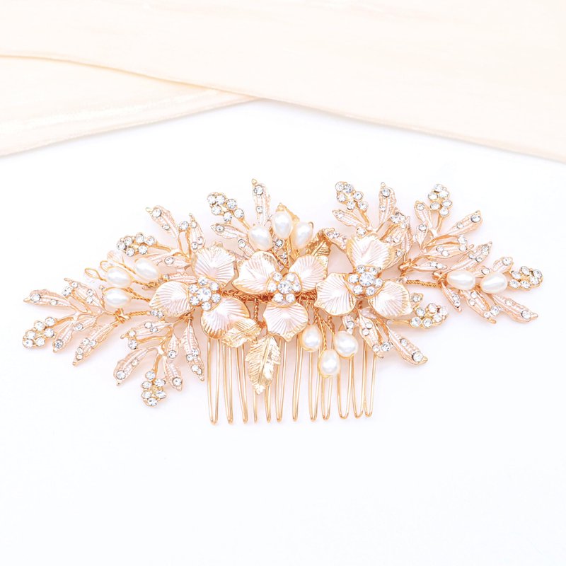 Oriamour Handmade Wedding Hair Comb Clip Rhinestone Bridal Hair Comb Piece, Hair Accessories for Brides Women (Gold)