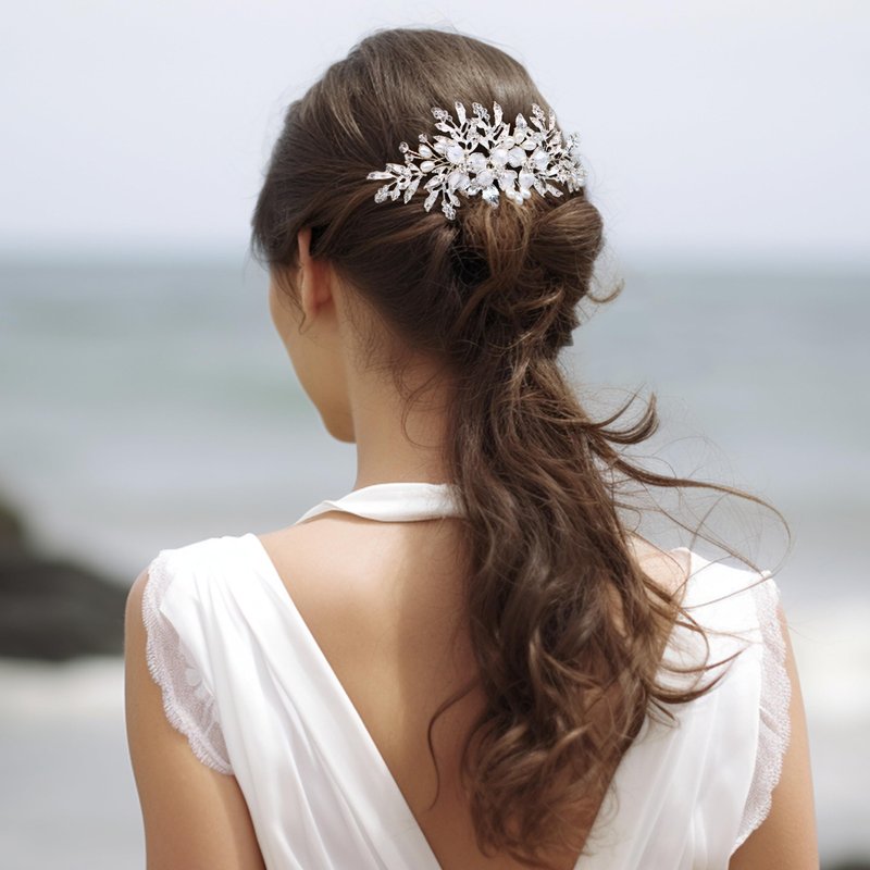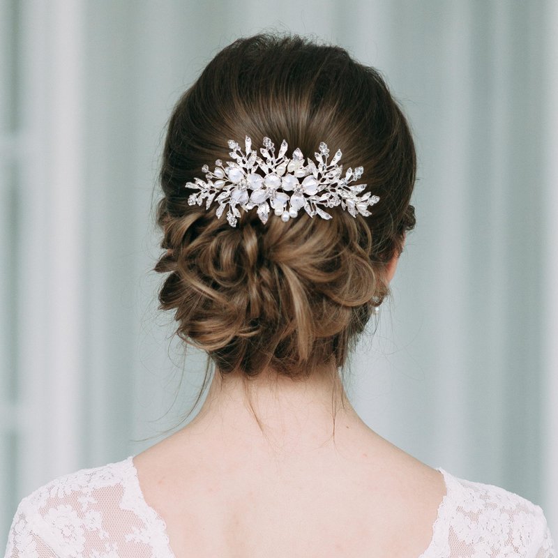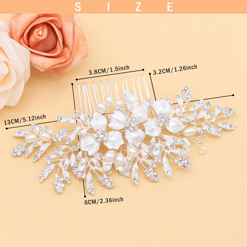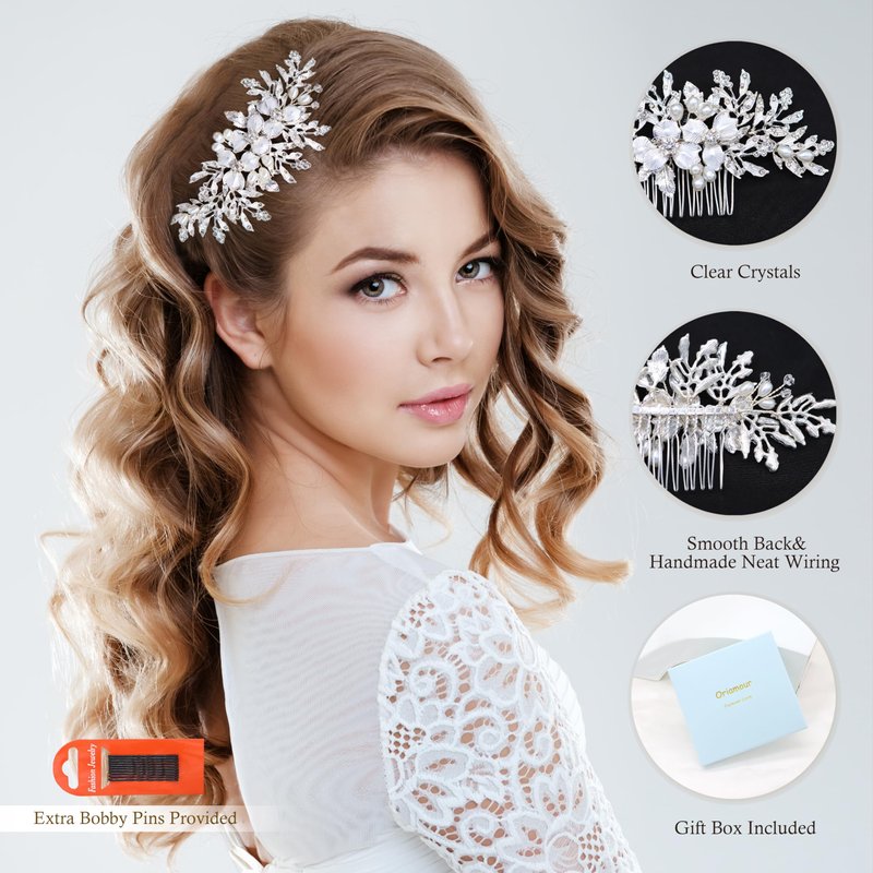 Oriamour Handmade Wedding Hair Comb Clip Rhinestone Bridal Hair Comb Piece, Hair Accessories for Brides Women (Silver)