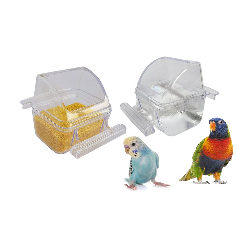 ORIBUKI 2 Pack Bird Feeders for Cage No Mess Parakeet Food Bowl with Cover Clear Hanging Parrot Water Dispenser Perch Cup Waterer Bird Dishes Seed Cage Cups Slot Replacement Feeder Bowls