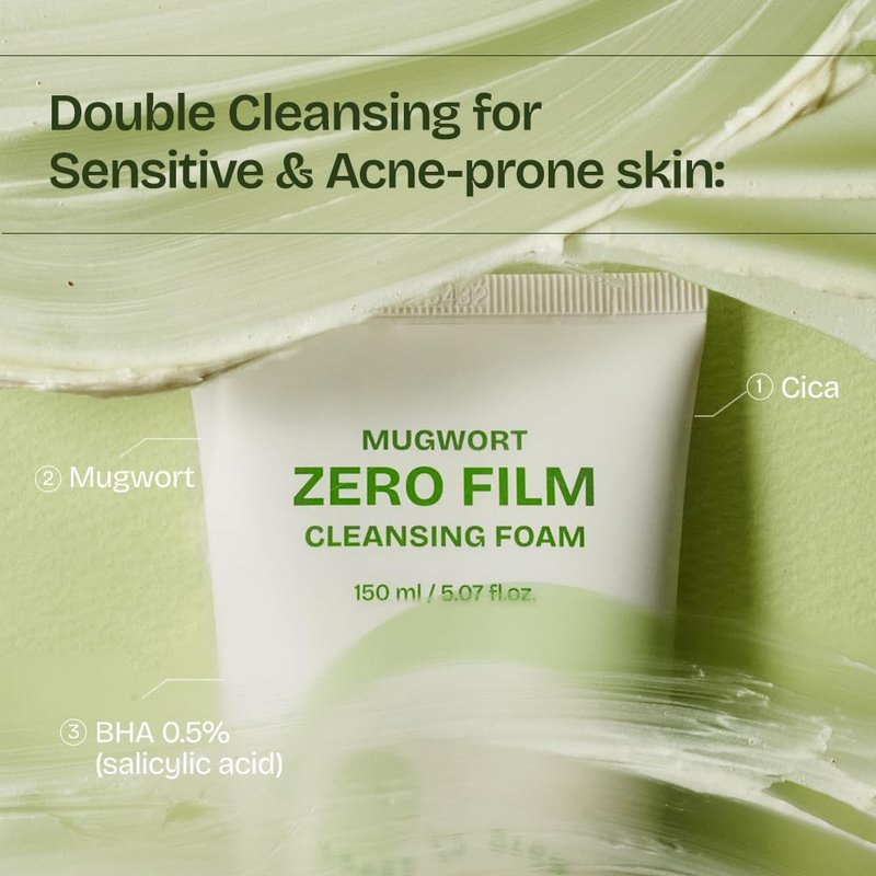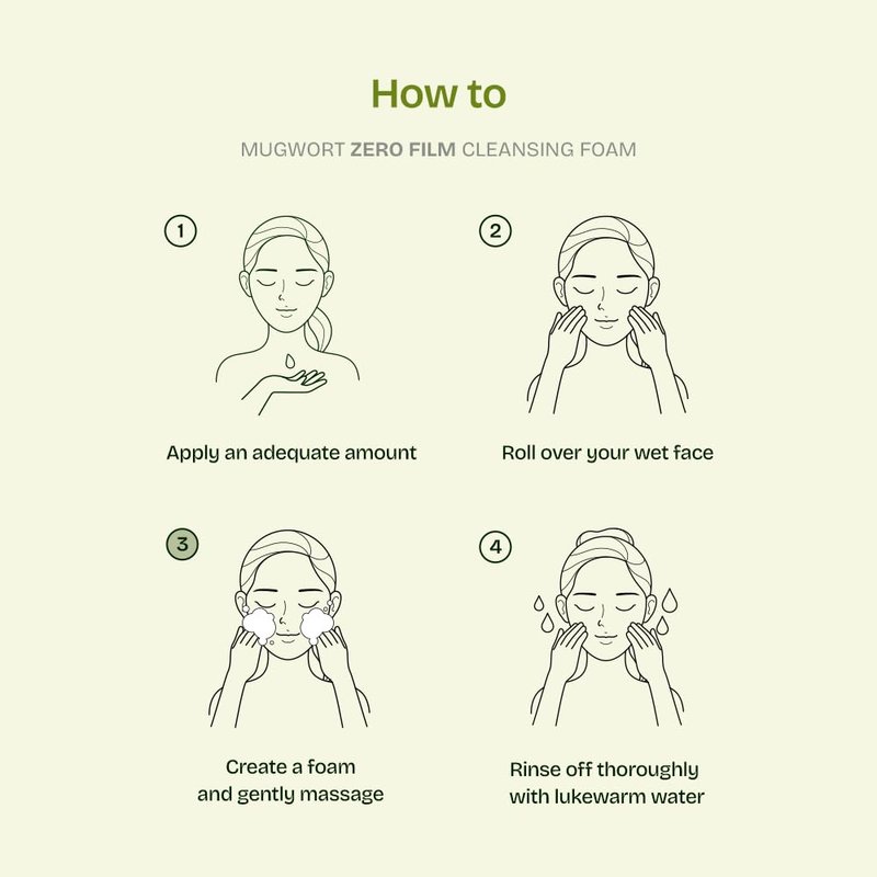 This Mugwort Zero Film cleansing foam gently removes impurities from your skin.