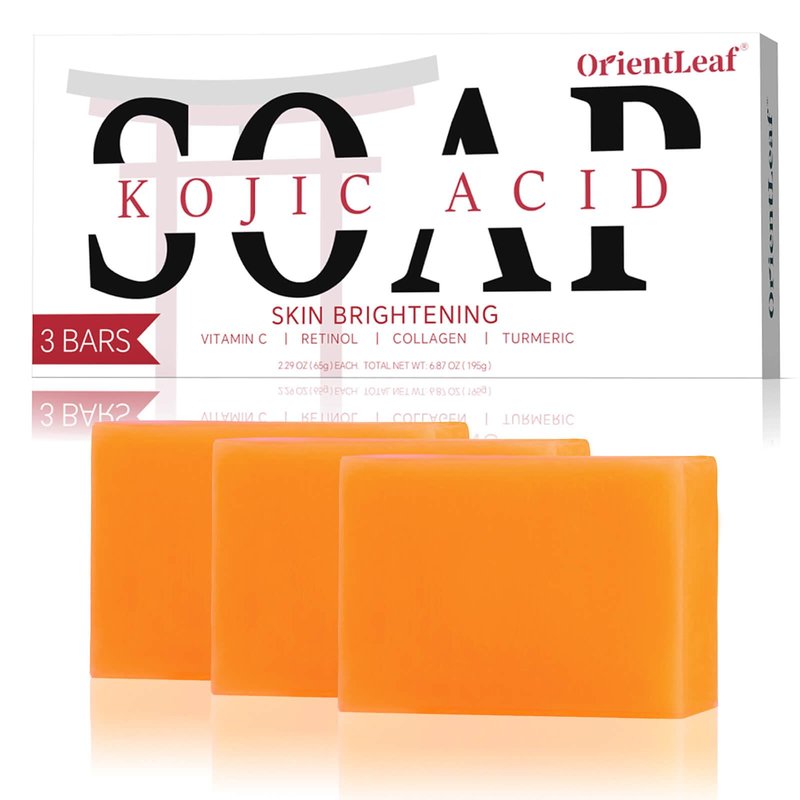 ORIENTLEAF Kojic Acid Soap, Turmeric Soap Bar, Fresh Citurs Scent, Gentle for face and body with Vitamin C, Shea Butter, Retinol, Olive Oil, Collagen (3 PACK)
