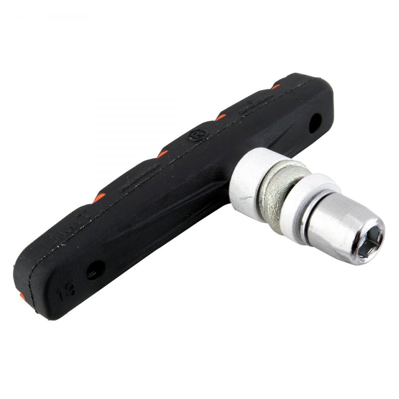 72mm bolt on brake pad that is V-brake compatible. Designed for all weather conditions with water shedding channels. Fully integrated angle adjustment.