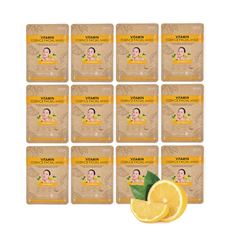 ORIGINAL DERMA BEAUTY 12 PK Vegan Face Masks for Skincare - Coconut, Aloe, Vitamin, Cucumber Facial Sheet Mask Korean Skin Care (12PK Vitamin)
