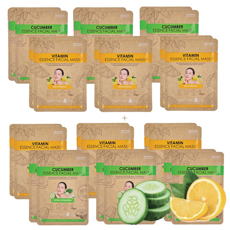 ORIGINAL DERMA BEAUTY 24 PK Vegan Face Masks for Skincare - Coconut, Aloe, Vitamin, Cucumber Facial Sheet Mask Korean Skin Care (24PK Cucumber & Vitamin)