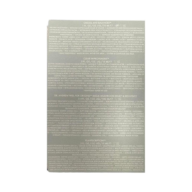 Origins Best Sellers Set for Women - 5 Pc 1oz Checks Face Wash, 3.8oz Lotion, 0.5oz Clear Charcoal Face Mask,1.62oz Serum, 1.69oz Moisturizer