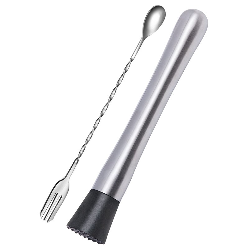 - FOOD GRADE MATERIALS: The bar spoon and cocktail muddler is constructed of high grade stainless steel and nylon head. BPA free and dishwasher safe.