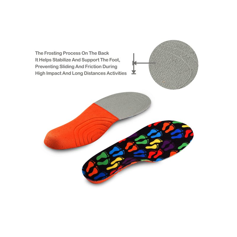 - ORTHOTICS ARCH SUPPORT- Firm foot arch support provides effective full arch support for preventing and alleviating pain associated with common foot conditions. Ideal orthopedic insoles for kids with flat feet, over pronation, high arch, low arch, common foot pain, arch pain, heel pain & plantar fasciitis.