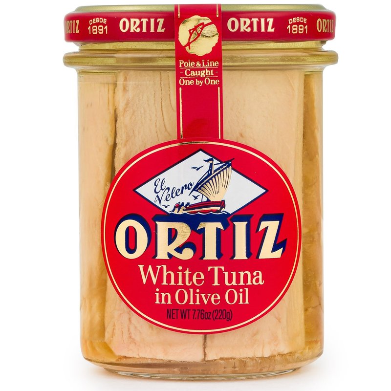 - ORTIZ WHITE TUNA: Known as bonito del norte in Spanish, white albacore tuna has a milder fishy flavor than other tunas. Ortiz tuna in olive oil is enhanced by the quality Spanish olive oil it is packed in, giving it an exceptionally soft texture and exquisite flavor. Net weight 7.76oz/220 grams, drained weight 5.29oz/150 grams.