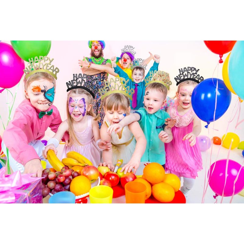 ☛ Come with 3 colors HAPPY NEW YEAR headband (black, silver, gold), 4pcs each color. Perfect for 12 kids and adults to play together, welcome to join the New Year party.