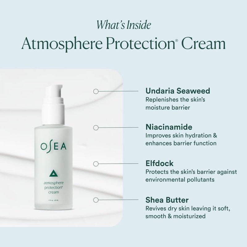 OSEA Atmosphere Protection® Cream 2oz - Lightweight Face Moisturizer for Fast-Absorbing Hydration - Smooths with Niacinamide, Shea Butter, and Undaria Seaweed - Ideal Under Sunscreen or Makeup