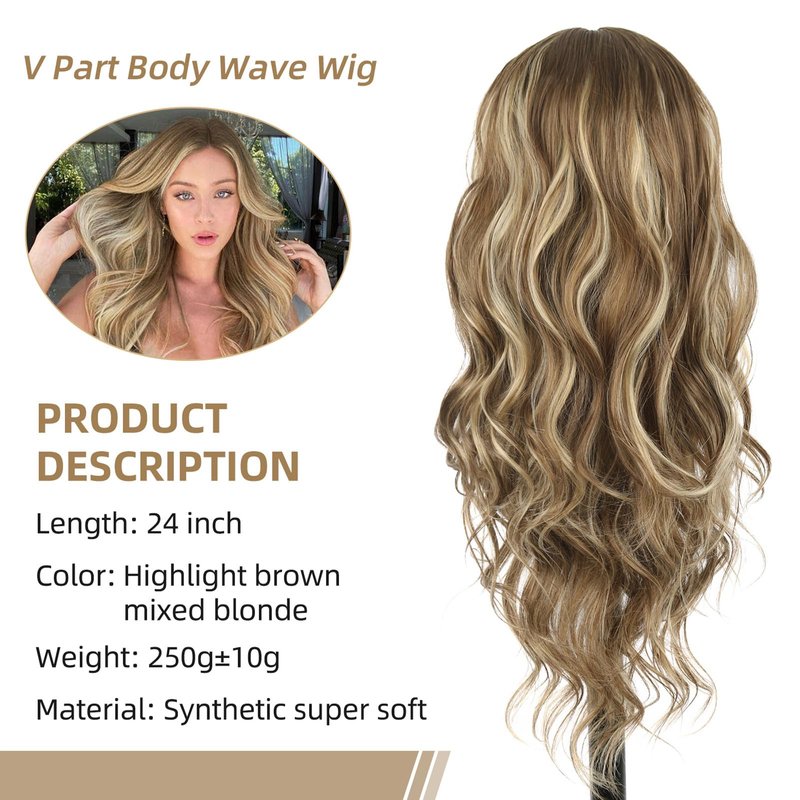 Oseti Body Wave Wig Highlight Blonde V Part Wig for Black Women Ombre Blonde V Part Wig U Part Wigs Highlight Hair Clip in Full Head Thin Part Wig No Leave Out 24inch