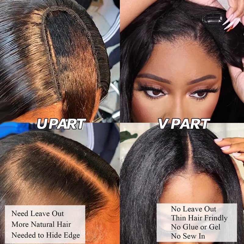 - 【Hair Material】 V Shape Thin Part Wigs, Upgrade U Part Wig. High temperature heat-resistant filaments, soft and comfortable hair, without glue and damaging the scalp.