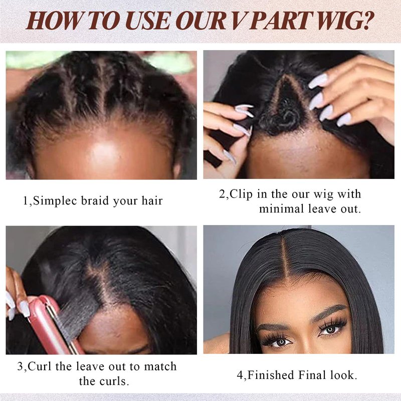 - 【Choose V Part Wig】The gluless wig is easy to wear, saves you time and does not harm your scalp. The U-shaped design makes the wig more comfortable and breathable to wear