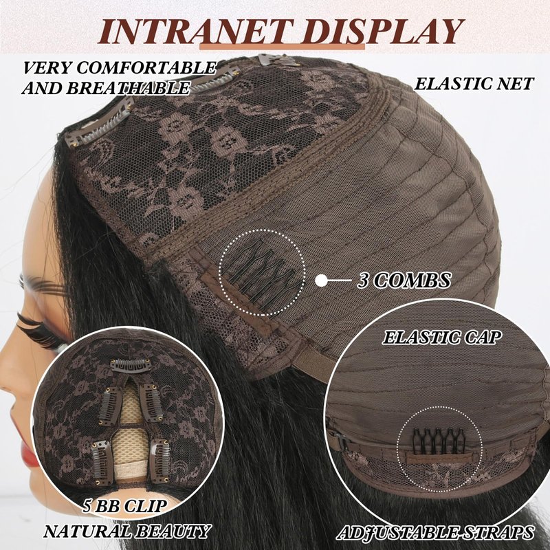 - U Part Wigs Cap Size】Average Wig Cap (Circumference:22-22.5inches) Fits Most Head Sizes.The hat comes with a clip inside to prevent it from falling off