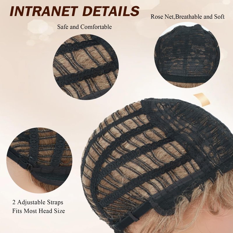 - Wig Size:The natural layered short pixie cut wig use comfortable and breathable rose mesh, easy to wear and not stuffy on the scalp, with adjustable buckles on both sides, suitable for most people's head shapes.