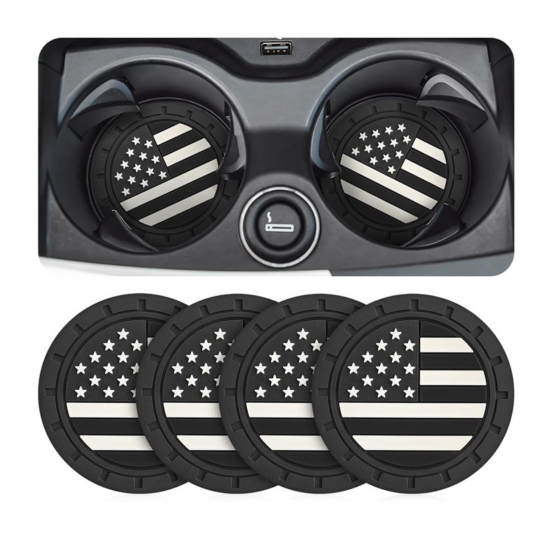 Osilly Car Cup Holder Coasters, 4 Pack American Flag Insert Car Cup Coaster, 2.75 Inch PVC Anti Slip Shockproof Embedded Drink Mat, Car Interior Decoration Accessories for SUV, Truck (Black)