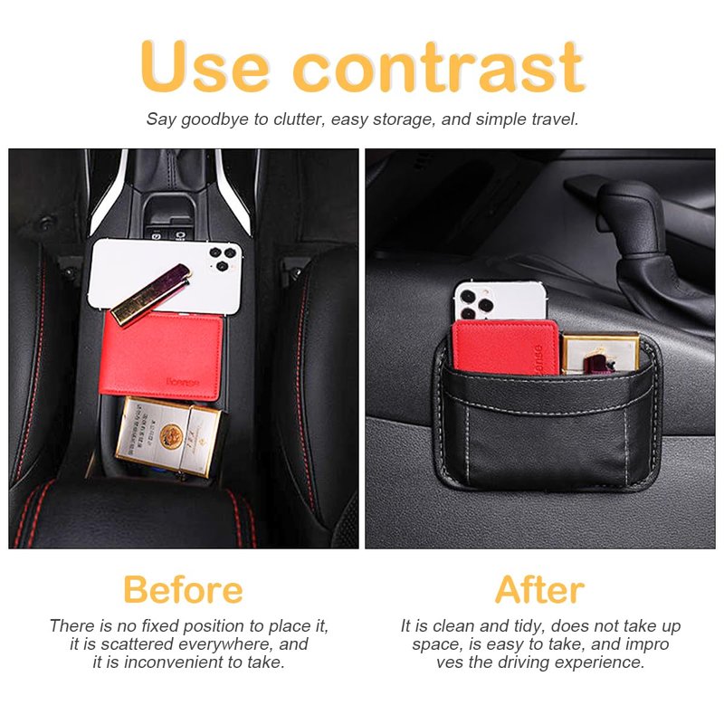 - 【Practical Gift】: With its sleek and stylish design, this organizer bag is an ideal gift for the storage enthusiast. It can be installed on driver's side to hold the small items, and it can also be installed on passenger's side to hold their wallet or phone. Both out of the way and clutter free.