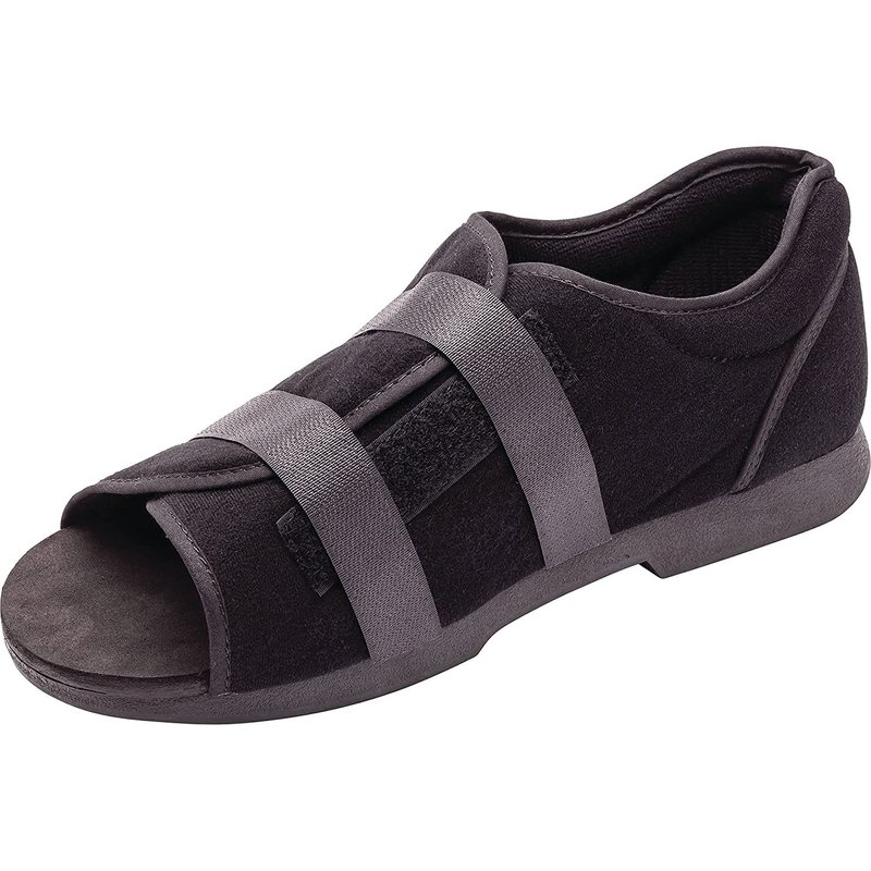 18003 Size: Small, Gender: Women Features: -Soft top post-op shoe.-Available in men and women genders.-Cotton-poly blend upper allows the patient's foot to breathe and provides added comfort.-Designed specifically for recovery after soft tissue procedures, post trauma, or to relieve the geriatric or insensitive foot.-Contact closure system provides even torsion and is designed for ease of use.-Large size fit to 9'' - 11'' men's shoe and 9''+ women's shoe.-X-large fit to 11.5'' - 14'' men's shoe. Options: -Available in X-large, large, medium and small sizes. Dimensions: -Small size fit to 4'' - 6'' men's shoe and 5'' - 6'' women's shoe.-Medium size fit to 6.5 - 8.5'' men's shoe and 7'' - 8'' women's shoe. Warranty: -6 Months warranty.