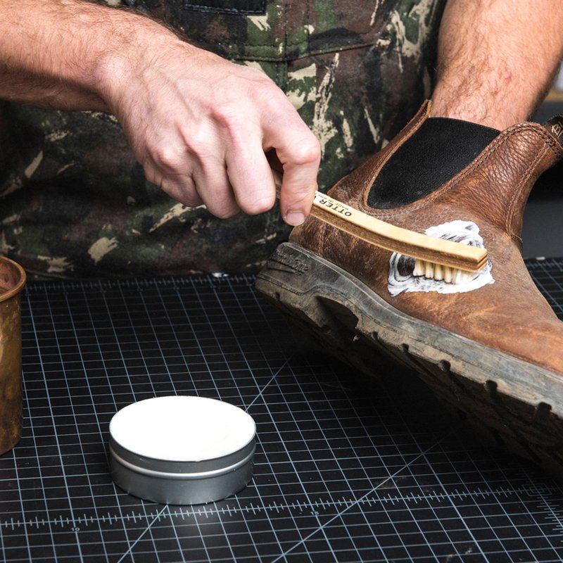 Don’t let the name fool you. Our Saddle Soap works great on all your leather products, even suede! Otter Wax Saddle Soap is made from our special proprietary blend of all-natural beeswax, castile soap, and essential oils to gently cleanse, protect, and revive your leather. Dirt, grime, grease, and stains of all sort don’t stand a chance when you use our all-natural Saddle Soap. Apply with a damp cloth and wipe clean, or dip a soft-bristle brush in water to create an extra deep-cleaning foam. Wipe down with a dry cloth, and you're done. After cleaning your leather, we recommend using OTTER WAX LEATHER SALVE to restore suppleness and shine to your leather while adding a layer of water-resistance protection. Works swell on your leather boots, jackets, belts, loafers, luggage, handbags, and of course… saddles.