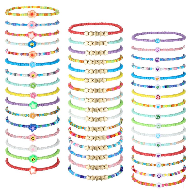 Features: Wide range of applications: These cute bracelets for girls have a wide range of applications and are suitable for shopping, dating, dinners, parties, work, commuting, gathering and so on. Meet replacement and sharing needs: These girls' bracelets in sufficient can meet your daily use and replacement needs, but also enable you to share with your family and friend. Specifications: Material: plastic Color: as shown in picture Size: one size Package includes: 48 x bead bracelets Notes: Manual measurement, please allow slight errors on size. The color may exist a slight difference due to different screen displays. Winding risk may exist, please keep away from kids under 3 years old. Small items, please keep away from little kids to avoid swallowing.