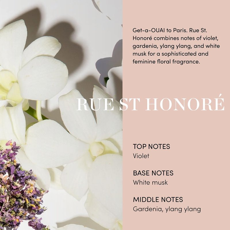 Get-a-OUAI to Paris. Rue St. Honoré combines notes of violet, gardenia, ylang ylang, and white musk for a sophisticated and feminine floral fragrance.