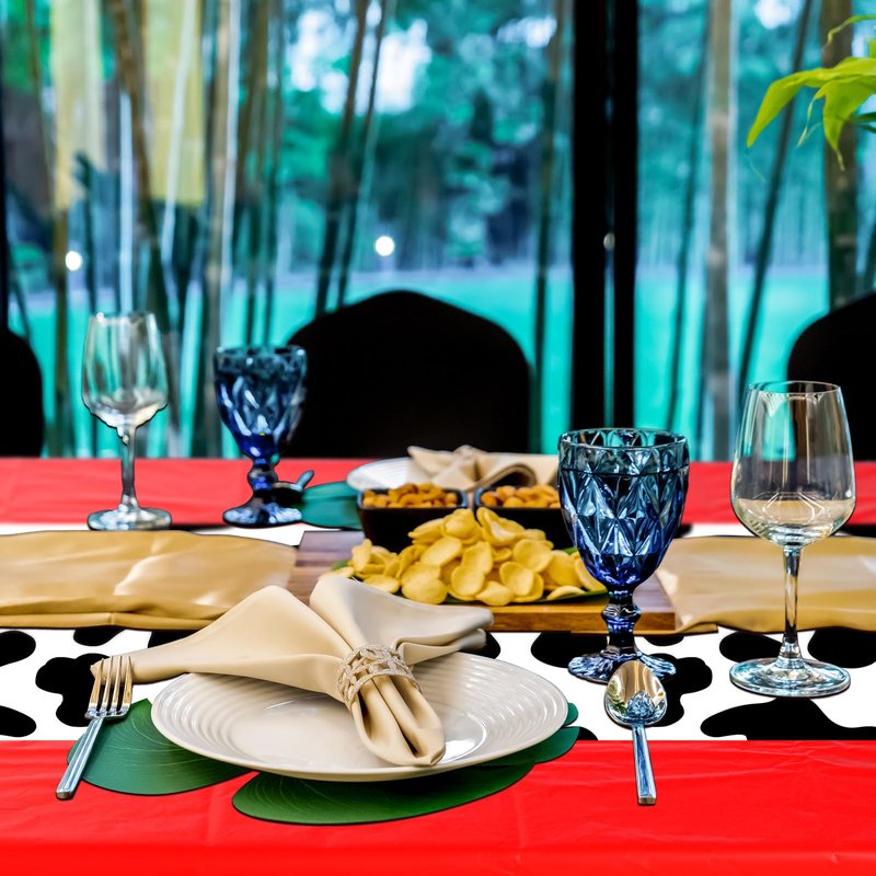 Oudain 4 Pcs 54 x 108 Inch Cow Table Cloths for Party Cow Tablecloth Paisley Table Runner Table Cover Rectangular Birthday Party Decorations Supplies for Home (Red)