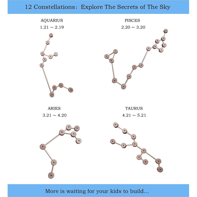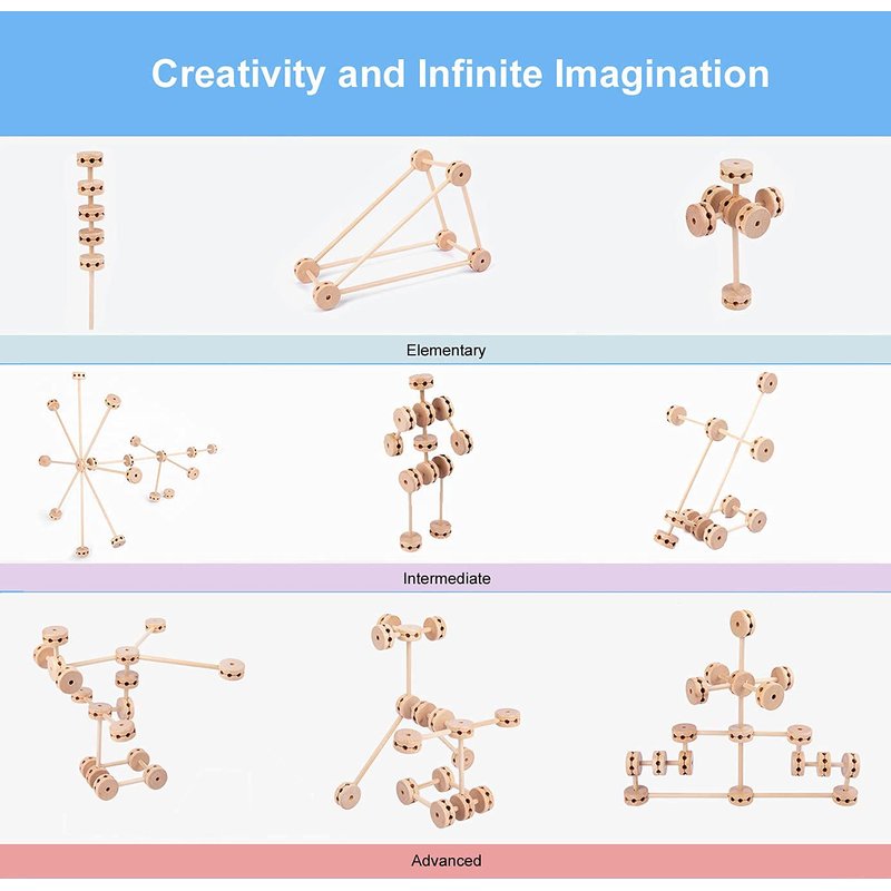 - 【WHAT YOU GET】40 pcs rods of different lengths and 20 pcs round joints, 1* barrel box, 1* Instructions. Assembly Tips: The rods was made of soft lumber,they are a bit tight in the early of use,rotating insertion will be easier. Kids can build all kinds of shapes follow his/her imagination like house, animal,car, tank,airplane,12 constellations puzzles,etc.