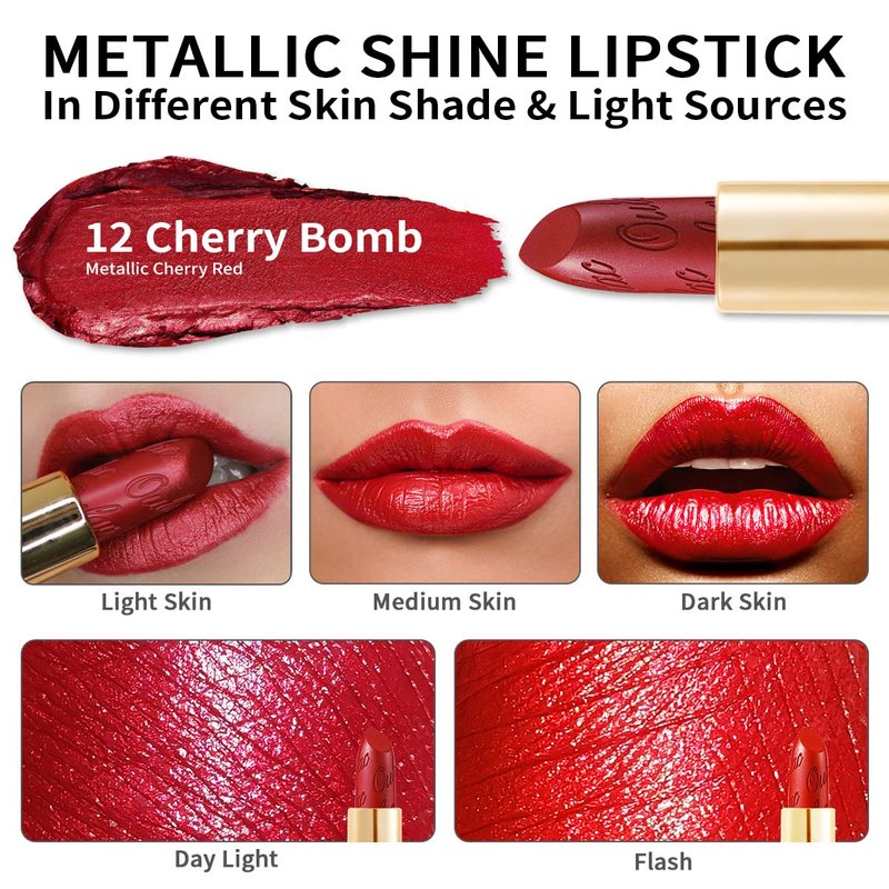 Oulac Red Lipstick for Women with Metallic 3D Shine Lightweight Hydrating Formula, High Impact Lip Color, Full Coverage Lip Makeup, Cherry Bomb(12)