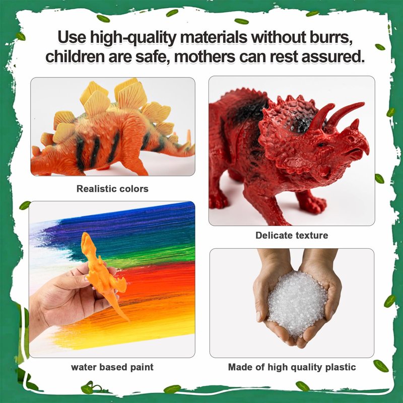 - Premium Material: Constructed from high-quality, non-toxic plastic, these dinosaur toys for kids 5-7 are safe for kids toddles and free from harmful chemicals. The sturdy materials ensure that the dino toys can withstand the rough and tumble of enthusiastic play, whether they're being stomped around the playroom or taken outdoors for an adventure.