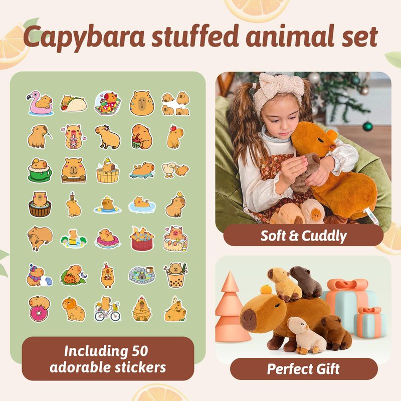 - SAFE & SOFT STUFFED ANIMAL:This soft capybara toy set is made of high quality grade A plush fabric, super soft, safe, non-toxic, durable, close to sensitive skin, easy to clean and machine washable.