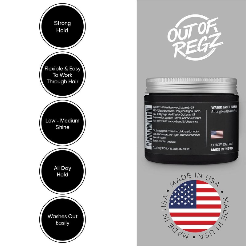 Out of Regz Hair Pomade for Men, Red, White & Blue - Strong Hold Pomade, Resistant to Humidity and Weather, Sweating, and Wind - Hair Styling Pomade with Low Shine