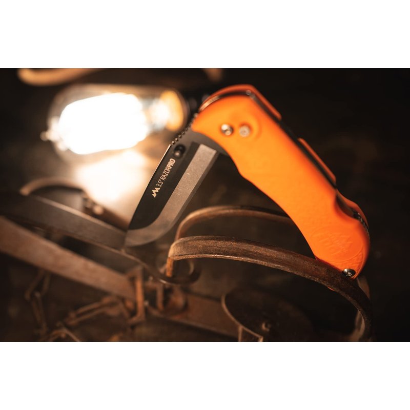 OUTDOOR EDGE RazorPro Double Blade Folding Hunting Knife - Field Butcher Knife with Replaceable RazorSafe & Gutting Blades, Orange Non-Slip Handle, Camo Holster, & 6 Blades. Must-Have Hunting Gear