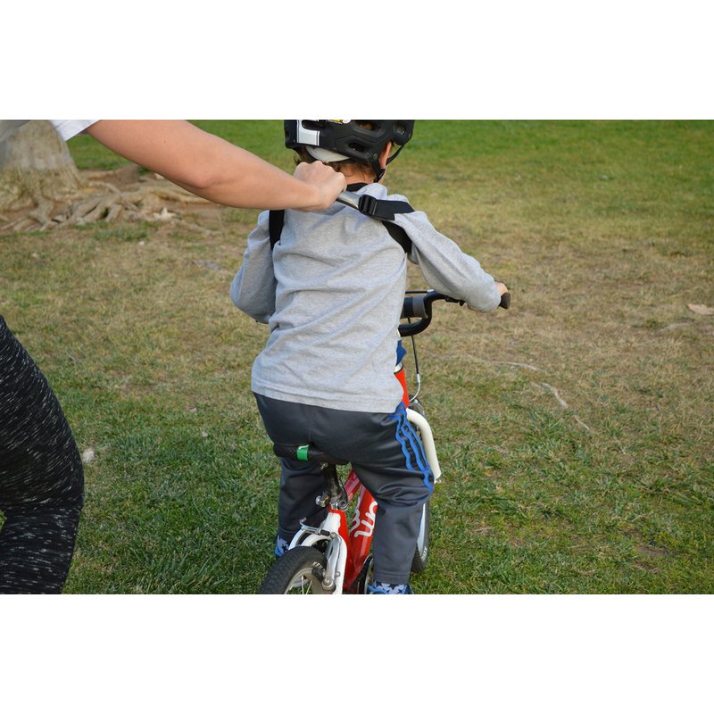 The First Ride Harness is specifically designed for the first few bicycle rides without training wheels or when transitioning from balance to pedal bike. It allows you to be by your child, ready to save her from falling, without killing your back and most importantly, instead of holding or pushing the child around you can let the child balance, and intervene only when she is about to bite the dust! Balance cannot be explained. Children need to find their balance by riding. With the First Ride Harness you can skip the scrapes and tears!
