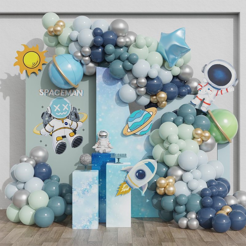 Outer Space Birthday Decorations 150 pcs Universe Astronaut Theme Balloons Arch Kit Navy Blue Sea Blue Pastel Blue Latex Balloons For Boys Kids Birthday Party Baby Shower Decor