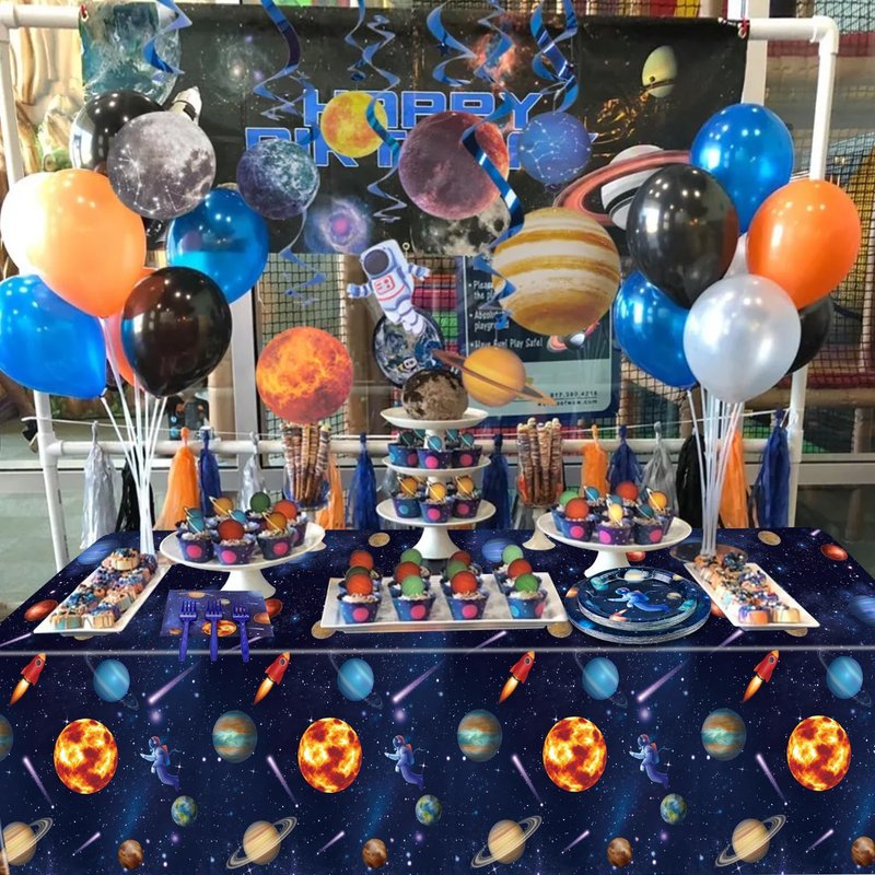 - 【Easy to Operate and Use】Just spread the space tablecloth on the table to protect your table from stains and scratches. Using these space birthday party supplies, you can simply dispose of them after the party. Spend more time celebrating a party, instead of cleaning up!
