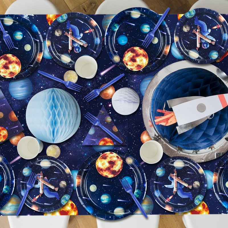 - 【Unique and Distinctive Space Themed Design】On the base of the solar system, adding more astronaut themed elements, such as rocket ships, space shuttles, and cosmic explorers. These exciting space dinnerware decorations are sure to be a hit with all your guests, kids who are interested in outer space themes. Use these universe party decorations to liven up the party's dreamy galaxy atmosphere and make your party even more impressive.