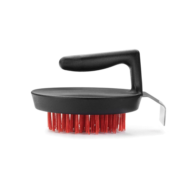 Outset 76621 Himalayan Salt Block, Pizza Stone and Cast Iron Pan Nylon Cleaning Brush with Stainless Steel Scraper, 5 x 4 x 3, Black