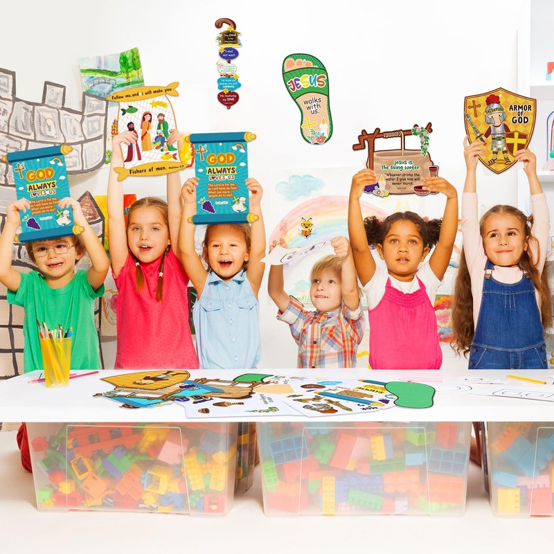 - Innovative Sunday School Design: our bible school crafts feature unique Sunday School themed designs like 'Armor of God', 'Jesus Walks With Us Slipper', 'Fisher of Men' and more, making these crafts not only fun, but educational; These design elements infuse meaning and Christian context to the crafting activities, making them a delightful teaching aid, nice Christian material for kids