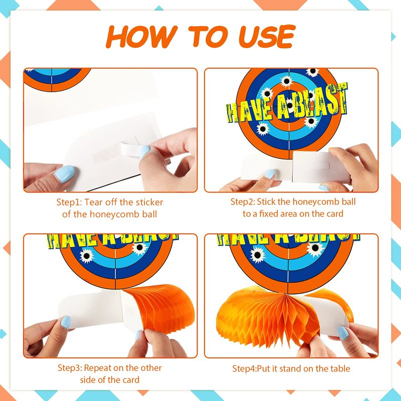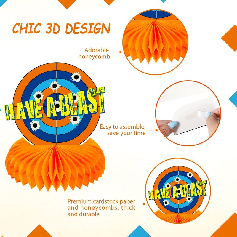 - Wide applications: the paper honeycomb table centerpieces are nice additions for boys' birthday parties, dart theme party, blaster battle theme parties, festivals, activities and more, they will bring your children a pleasant party memory