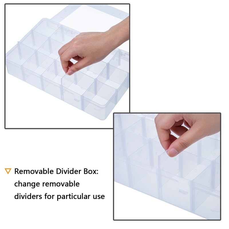 Quantity: 1 piece storage box (15 compartments, includes 2 large removable dividers and 12 small removable dividers)