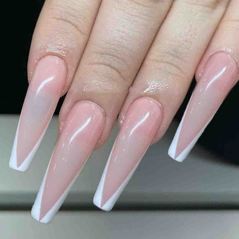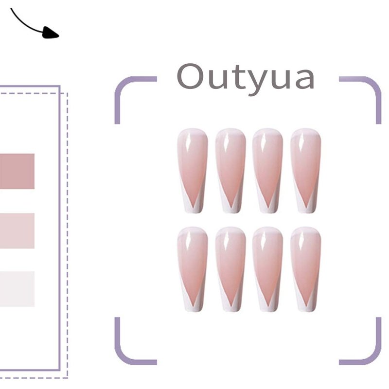 Outyua French Tips Press on Nails Coffin Glossy False Nails with Designs Pink Extra Long Fake Nails Ballerina Acrylic Cute Nails for Women and Girls 24Pcs (French)
