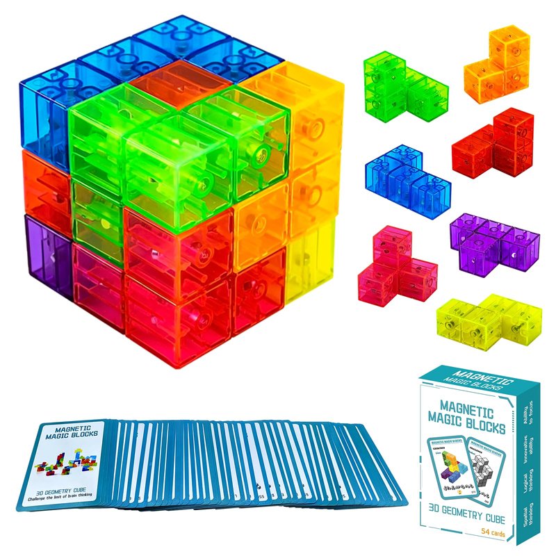 Introducing the MAGIC Magnetic Building Blocks - SET OF 7 MULTI SHAPES MAGNETIC BLOCKS WITH 54 GUIDE CARDS that are perfect for both KIDS and ADULTS. These STEM MAGIC MAGNETIC 3D PUZZLE CUBES are not just TOYS; they are INTELLIGENCE DEVELOPING AND STRESS RELIEF FIDGET TOYS. With 7 PCS PRESCHOOL MULTI SHAPES MAGNETIC TOYS WITH 54 CARDS, children can BUILD, CREATE, and EXPLORE while DEVELOPING their INTELLIGENCE. The MAGNETIC BUILDING BLOCKS MAGIC MAGNETIC 3D PUZZLE CUBES come with 54 GUIDE CARDS to assist in the BUILDING process, making it easier for PRESCHOOL kids to grasp the concepts of SHAPES and MULTI-dimensional puzzles. Ideal for EDUCATIONAL purposes, these BLOCKS are designed to enhance spatial awareness and problem-solving skills. Adults can also enjoy the STRESS RELIEF benefits of these FIDGET TOYS, making them a versatile addition to any household. Whether you're looking to stimulate a child's mind or find a creative outlet for STRESS, the MAGIC Magnetic Building Blocks are the perfect choice. A CHILDREN'S EDUCATIONAL TOYS AND STRESS RELIEF FIDGET TOYS FOR KIDS ADULTS, this SET is a must-have for any STEM enthusiast or anyone seeking a fun and engaging way to pass the time.
