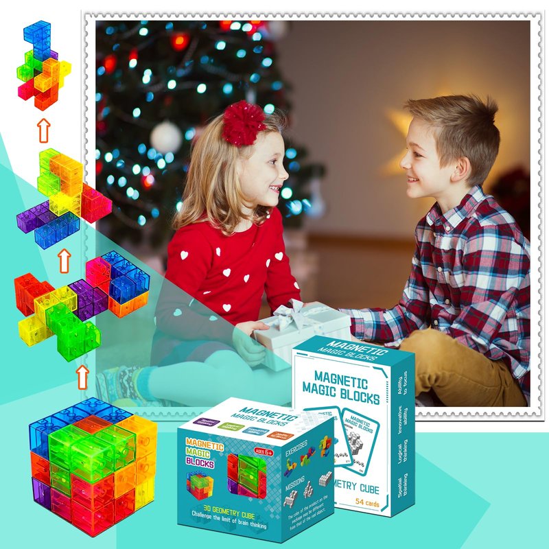 OUXIA Magnetic Building Blocks Magic Magnetic 3D Puzzle Cubes, Set of 7 Multi Shapes Magnetic Blocks with 54 Guide Cards, Children's Educational Toys and Stress Relief Fidget Toys for Kids Adults
