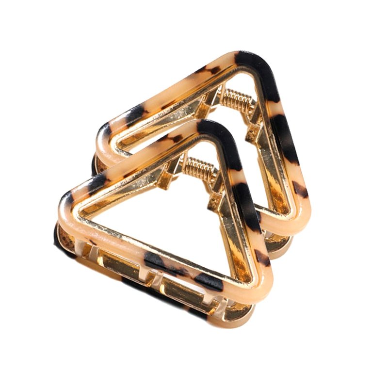 Ovche 2 Pack Triangle Acetate Metal Claw Hair Clips No Slippage Stylish Hair Clamp Grip for Thick Hair Jaw Comb Hairclips Hair Catch with Teeth Hair Updo Grip for Bath,SPA,Washing,Makeup (Tortie)