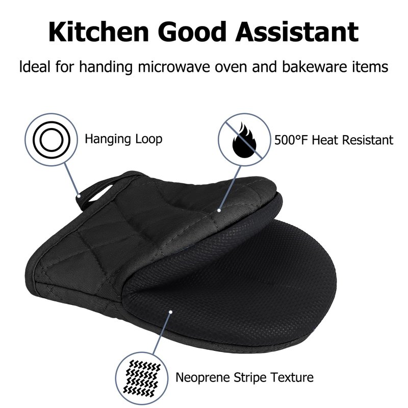 - CONVENIENT TO USE AND STORE: With no-slip grip surfaces and hanging loop gloves, you can easily store the mini mitts in a drawer or hang on a hook.
