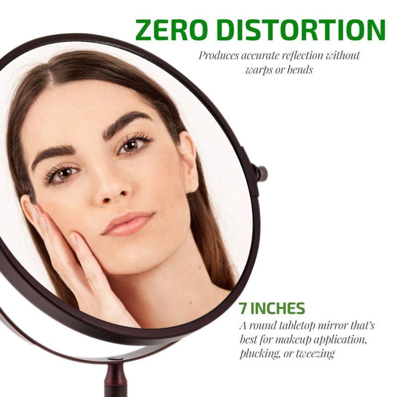 - 7-INCH CLEAR-VIEW SPACE & DOUBLE-SIDED MIRROR: Displays a clear reflection that allows you to view your entire face in exceptional detail. With a spacious surface area, this mirror provides ample room for effortless grooming and makeup application. Its double-sided feature offers versatility, allowing you to switch between magnified and standard views with ease. This mirror ensures crystal-clear reflections for every detail of your beauty routine. It absolutely offers unparalleled clarity and convenience, making it an essential addition to any vanity décor.